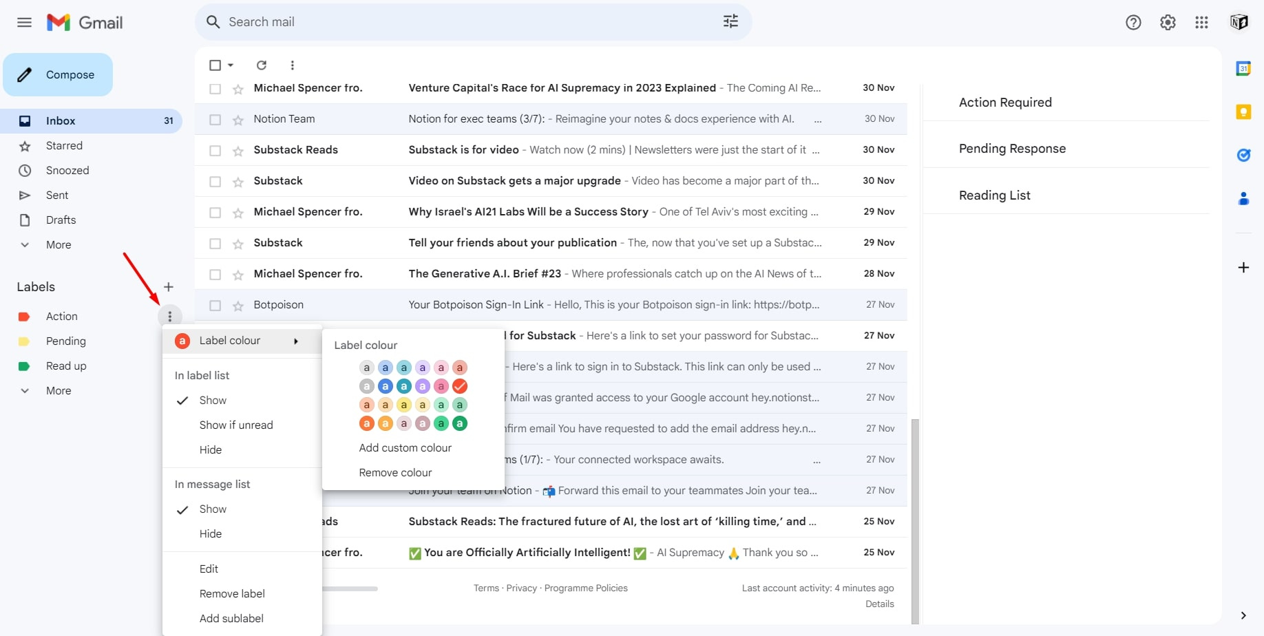 Choose the action you want, such as applying a label, marking as important, or categorizing.